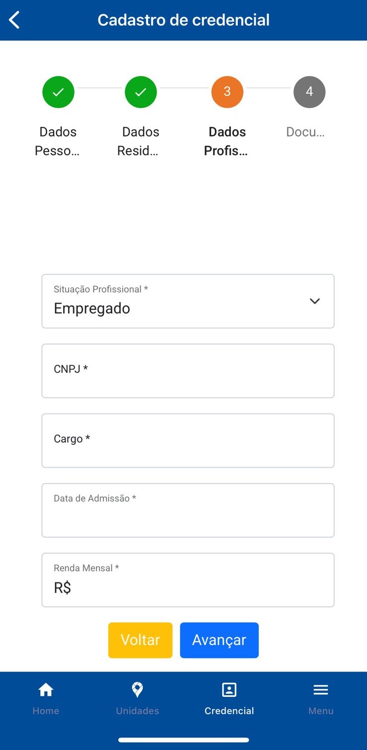 2. Clique em “Credencial” e insira seus dados;