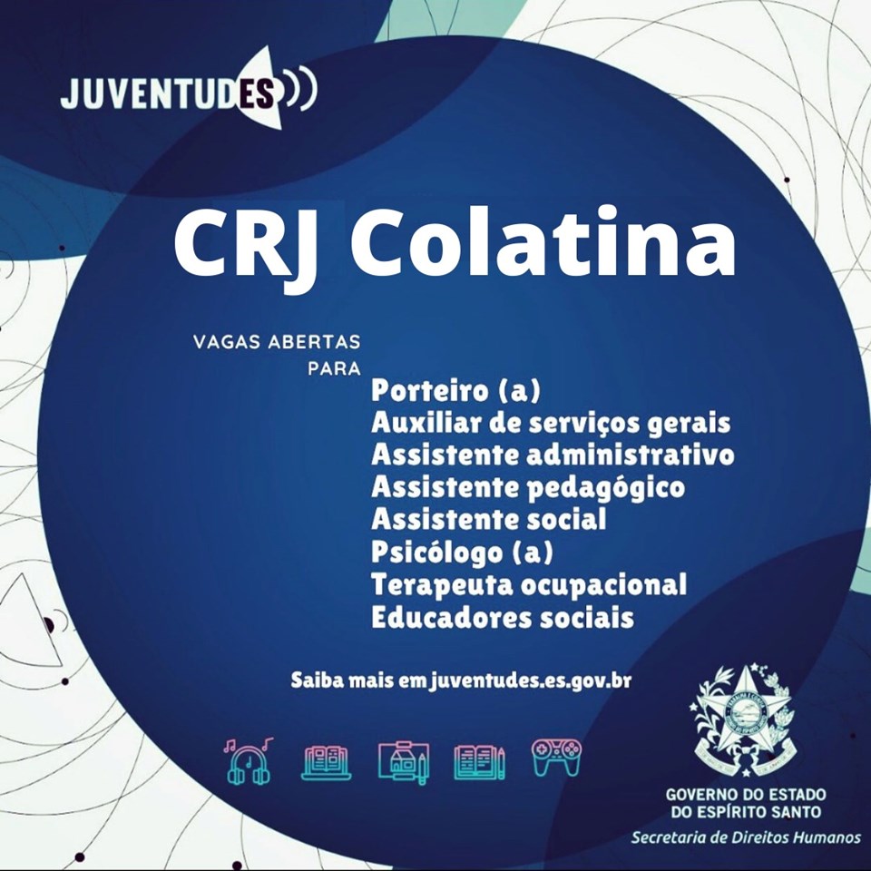 O Centro de Referência das Juventudes (CRJ) Colatina abriu seleção para contratar nove profissionais que vão compor a equipe de trabalho. Confira aqui o edital. As inscrições podem ser feitas até o dia 04 de fevereiro.