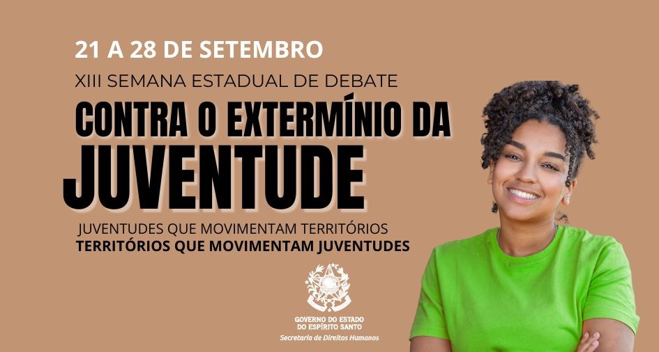 A Secretaria de Direitos Humanos (SEDH), por meio da Subsecretaria de Políticas das Juventudes e com apoio do Conselho Estadual da Juventude (CEJUVE), realiza de 21 a 28 de setembro, a XIII Semana Estadual de debate contra o Extermínio da Juventude. A cerimônia de abertura acontece no dia 21, no Museu Capixaba do Negro (Mucane), no Centro de Vitória. O tema da edição deste ano é “Juventudes que movimentam Territórios, Territórios que movimentam Juventudes”.