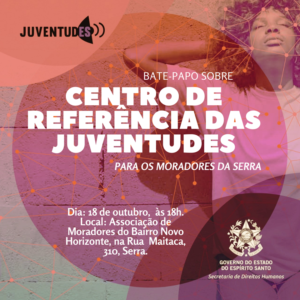 Os moradores da Serra estão convidados para participar do bate-papo sobre o Centro de Referência das Juventudes (CRJ), que vai ofertar serviços públicos especializados para as juventudes da região da Grande Carapina. O encontro vai ocorrer, na próxima segunda-feira (18), na Associação dos Moradores de Novo Horizonte, na Serra, às 18 horas.