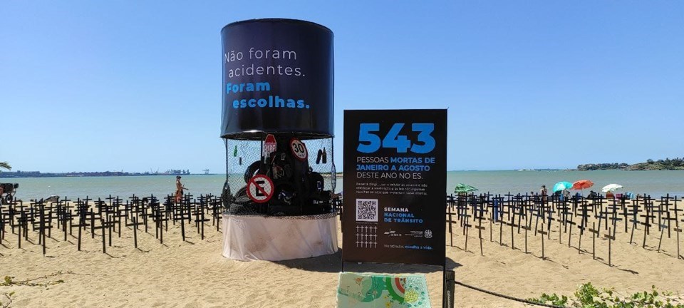 Mais uma vez, a Praia de Camburi, em Vitória, foi o local escolhido para uma intervenção urbana realizada pelo Departamento Estadual de Trânsito do Espírito Santo (Detran|ES). A ação faz parte das atividades realizadas durante a Semana Nacional de Trânsito (SNT) e contou com a afixação de 543 cruzes na areia da praia, representando a quantidade de mortes de trânsito no Espírito Santo de janeiro a agosto deste ano.