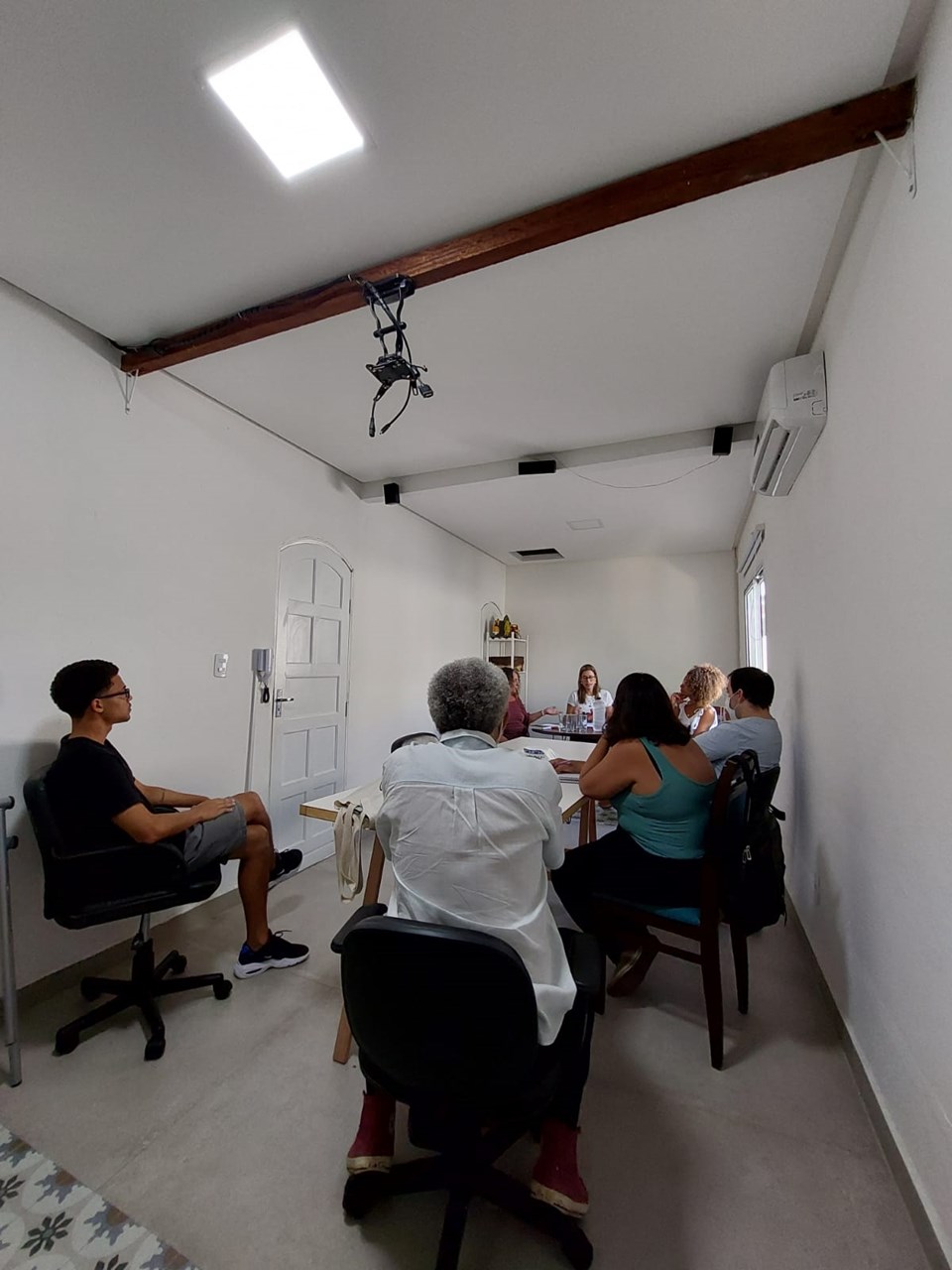 Comandada pela coordenadora geral do CRJ São Pedro, Sheila Shunck, a reunião foi para a apresentação do plano de trabalho para a equipe-chave, além do primeiro encontro presencial do grupo. A equipe é formada por Nieve Matos, coordenadora de articulação; Antônio Apolinário, educador social; e Guilherme Côgo e Eliasibe Ribeiro, articuladores locais, além de Lena Côgo e Thaís Souto Amorim, representantes da equipe do IBCA.