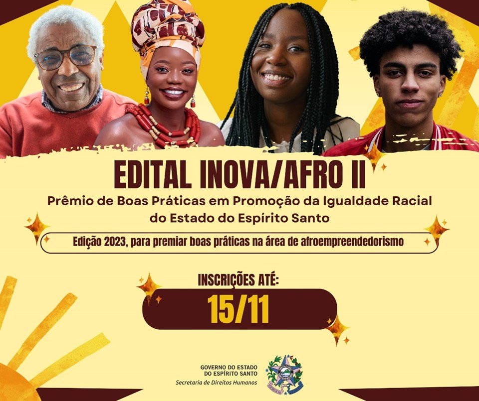 Estão abertas as inscrições para o II Prêmio de Boas Práticas em Promoção da Igualdade Racial do Espírito Santo. A iniciativa é da Secretaria de Direitos Humanos por meio da Gerência de Políticas de Promoção da Igualdade Racial. O edital foi publicado, nesta segunda-feira (02), no Diário Oficial do Estado. A inscrição é gratuita e pode ser feita até o dia 15 de novembro.