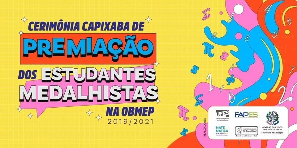 A Secretaria da Educação (Sedu) e a Coordenação Regional da Olimpíada Brasileira de Matemática das Escolas Públicas do Espírito Santo (OBMEP/ES), por meio do Programa Matemática na Rede, realizará, no próximo dia 15 de março, a “Cerimônia Capixaba de Premiação dos Estudantes Medalhista na OBMEP 2019/2021”. O evento será realizado no Centro de Convenções de Vitória, às 14h30.