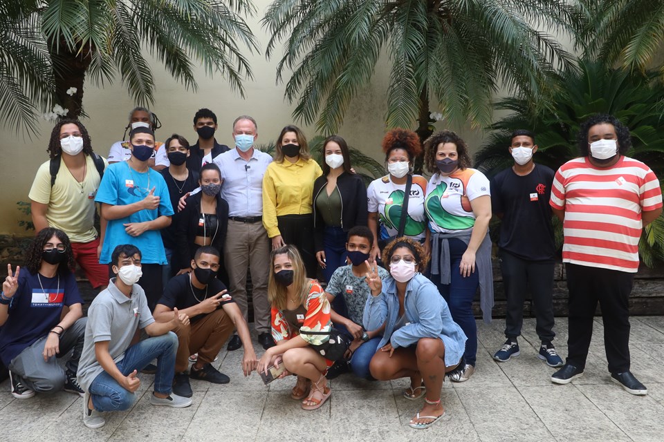 Cerca de 20 jovens de 15 a 24 anos, atendidos no Centro de Referência das Juventudes (CRJ) Terra Vermelha, em Vila Velha, e da região de Feu Rosa, na Serra, visitaram, na manhã desta terça-feira (16), o Palácio Anchieta, em Vitória. O governador Renato Casagrande surpreendeu as juventudes e participou da visita.
